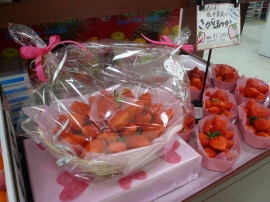今回のイチオシアイテムは、新館側「さくらんぼ」さんの朝摘みいちご「さがほのか」です。